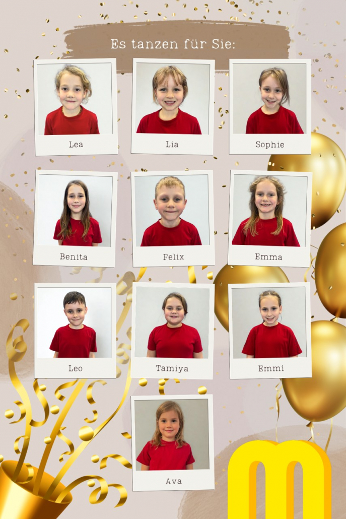 In diesem Jahr verwandeln wir uns in „Minions“ und bringen mit unserem fröhlichen und wilden Tanz jede Bühne zum Strahlen. Unseren Tanz verbinden Rhythmus, Bewegungsspiel und eine Portion Spaß, damit Zuschauer jeden Alters mitrocken können. Teamgeist, Kreativität und Begeisterung stehen bei uns im Mittelpunkt – wir unterstützen uns gegenseitig, lernen voneinander und wachsen gemeinsam über uns hinaus.